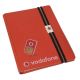 1.2mm recycled leather printed on outer |265x155mm cover to suit 148x105mm|50 leaf one colour 2 sides|With elastic and printed clip|Bonded Leather Colours Available:|Yellow (Approx. PMS 7405 C)|Orange (Approx. PMS 716 C)|Pink (Approx. PMS 701 C)