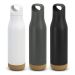 Streamlined 500ml double wall vacuum insulated drink bottle made from stainless steel with a powder coated finish, natural cork base, and screw on lid with carry handle. Allure is presented in a natural gift box.