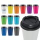 Introducing the Aroma Coffee Cup with Handle Lid, a 350ml double-walled cup perfect for both hot and cold beverages. Featuring a silicone-sealed flip-up handle lid and a tough foldable carry handle, this cup is designed for convenience on the go. BPA-free and microwave-safe, it combines safety with functionality. The cups are available in a variety of colours, with a coloured translucent outer layer over a solid white inner lining, offering a stylish and unique look. For logo longevity hand washing is recommended.