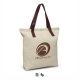 Robust tote bag with a base gusset for added capacity which is manufactured from 280gsm natural heavy cotton canvas. It has a zippered top closure and on-trend long brown PU handles which are ideal for carrying it on a shoulder.