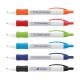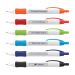 Retractable plastic ballpoint pen with a white barrel, a soft rubber grip and a rotating inner barrel which holds six different messages. Each time the push button is clicked, a new message is displayed in the two clear barrel windows. It has a blue or black refill with 1200 metres of German manufactured Dokumental ink. A production lead time of 40 working days applies to this product by air freight and orders can be sea freighted on request to reduce the freight cost.