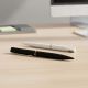 A modern executive metal pen with a twist-action design, featuring a rubberised plastic upper barrel and a stainless steel lower barrel with a matte finish coating. Complete with shiny silver chrome trim, the upper barrel can be pad printed, while the lower barrel can be pad printed or laser engraved. Fitted with a Parker-style German manufactured black ink refill with a 1500 metre writing distance and tungsten carbide ball for smooth, reliable writing.