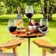 This Bamzuki outdoor party table makes the outdoor summer party look classy and fancy the beautiful unique design will captivate the attention of your surroundings. It is made of natural bamboo which is one of the best and most sustainable resources that is environmentally friendly and is natural anti-bacterial anti-fungal and anti-viral properties that never spoil your foods with odors colours or chemicals and maintain its beauty and elegance for years. This wine and cheeseboard table is portable foldable and has 6 positions for holding wine glasses 4 pieces cutlery cheese set a bottle opener and 2 wood sticks these tools and stickers are on the hide-away cut out sections under the main surface held by magnetite. It is easy to assemble and disassemble is a great promotional product for the picnic and party at the park concert festival or in the backyard. Cutting on the reverse of the board and handwash is recommended to maximise the life of cheeseboard. It is presented in a premium cardboard paper gift box.