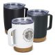 Stylish 350ml stainless steel vacuum insulated mug with a cork base and a tough powder coated finish. It has a transparent push on lid with a sliding closure and is presented in a natural gift box.