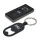 Metal bottle opener key ring with a matt finish which can be laser engraved to a silver mirror finish. It is beautifully presented in a black gift box.