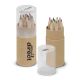 12 assorted colour pencils in a convenient unbleached cardboard tube with a translucent plastic cap which features a built-in pencil sharpener.
