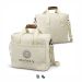 Spacious and stylish 26L cooler tote bag with PE foam insulation encased in a water-resistant PEVA inner liner. The outer construction is natural 100% 450gsm cotton canvas with stunning leather-look PU accents. It has cotton carry handles with a PU cuff and a removable, adjustable shoulder strap. Other features include a zippered top closure, piping details to hold the structure and a large slip pocket.