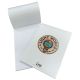 Specifications|Cover Type: Soft|Paper Colour: White|Binding Method: Cover Taped to Padded Notepad|Leaves: 50|Dimensions|W 148mm x L 210mm x 6mm|Materials|Cover: 250gsm Satin Paper|Pages: Lined 80gsm Offset|Backing: 600um Strawboard|Branding Area (Cover)|100mm x 100mm Digital Print