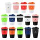 Environment friendly 12oz reusable coffee cup with a heat-resistant silicone band and lid plastic cup is manufactured from food grade polypropylene which is BPA-free the silicone band and lid is made of European standard silicon material. The cup lid and band can be mixed and matched in any colour combination from the standard colours. It is dishwasher safe and microwave safe. Note the silicone band/lid is not recyclable material.