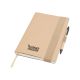This A5 size note pad is made from recycled paper and is supplied together with a recycled pen. Featuring a natural colour super-wide elastic closure and handy ribbon, perfect as a give-away at meetings and events.