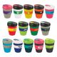 Design inspired 350ml reusable coffee cup with a heat-resistant silicone band and a secure screw on lid with a splashproof flip closure. It is manufactured from polypropylene which is shatterproof, odour-resistant and BPA-free. The cup, lid, flip closure and band can be mixed and matched in any colour combination from the standard colours at no extra cost. Up to five different colour combinations are included in the price and more are available for an additional charge. It can be presented in an optional natural gift box. This product is not dishwasher safe and handwashing is recommended. Express Cup Deluxe is protected under New Zealand Design Registration No. 419451 and Australian Design Registration No. 361937.