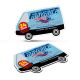 * Van-shaped fridge magnets with a high gloss laminated finish