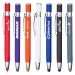 This click-action metal pen features a unique rubberised finish and comes with black ink for smooth writing. It also includes a matching stylus tip for easy navigation on devices. Each pen is engraved to reveal a striking matte finish, offering a 500m writing distanceperfect for long-lasting use.