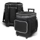 Large 24L trolley cooler bag with a two-stage pull up handle and robust dual wheels. It has thick PE foam insulation encased in a water-resistant PEVA inner liner and the outer construction is 600D polyester with decorative ripstop nylon trim. Other features include a zippered top closure, two large side pockets, a large zippered front pocket, woven carry handles with a Velcro cuff and trendy elastic lacing which is ideal for holding a sweater or light jacket.