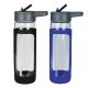 This single walled glass sports bottle comes with an outer silicone sleeve for protection. BPA free sipper. 600ml capacity.