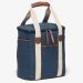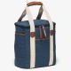12oz Luxury waxed cotton canvas cooler|Polyester navy/white striped lining|Large zippered insulated main cooler compartment with removable cell foam padded divider|Utilising the divider provides six separate compartments for snacks and drinks|Front and end slip accessory pockets|Wide contrast webbing carry handles with faux leather wrap and dome closure|Gunmetal zip sliders with faux leather zip pullers|CAPACITY: 18 Litres