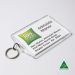 This clear acrylic keychain is a sharp way to keep your brand in hand. Featuring a full-colour digital logo insert with the option to print on both sides, its a standout pick for hotels, events or giveaways. Proudly made in Australia, built to last and designed to be seen.