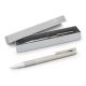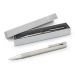 Timeless retractable ballpoint pen with a brushed stainless steel barrel. The pen has a finely tuned, spring-loaded metal clip and matching shiny chrome accents. It has a black LAMY M16 refill with 8000 metres of writing ink and is 100% made in Germany. The LAMY logo is engraved on the upper barrel and it is beautifully presented in a LAMY gift box.