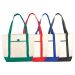 Open main compartment with double 24 inch handles. Open front pocket with pen loop. Body of bag is natural colour. Reusable and a great alternative to plastic bags. Capacity of approximately 24L.