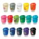 Fashion inspired 340ml reusable glass coffee cup with a secure push on silicone lid and a wide heat-resistant silicone band. The lid and band can be mixed and matched in any colour combination from the standard colours at no extra cost. The silicon band makes it easy to hold when containing hot coffee. Up to five different colour combinations are included in the price and more are available for an additional charge. Glass is a natural choice for a clean, pure taste and it is a reusable alternative to single-use paper cups. Metro Cup is presented in an unbleached cardboard gift box with a window to show the branding and product care instructions are printed on one side. An optional gift tube is available for presentation. This product is not dishwasher safe and handwashing is recommended.