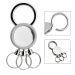 Multi ring key ring in round shape made of zinc alloy metal 3 rings attached to separate different group of keys lift and twist top ring to hook the key ring onto your belt. Can be laser engraved and printed print may fade over time.