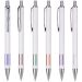 Metal ball pen. White anodized aluminum barrel with coloured grip, metal clip, polished plated trims. 1.0mm slim refill German Dokumental Black 0239 Ink, T.C.NIB, with extended writing length.