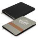 Durable PU leather portfolio with a tan strip and a zippered closure. It includes an A4 lined pad, a phone stand, a double strap holder, two single strap holders, a pen holder, and six business card holders.