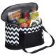 Chevron Printed 600D & 300D polyester|Heat sealed leak-proof PEVA lining|D shaped zippered opening to main insulated cooler compartment|Webbing carry handles with Velcro wrap closure|Front accessory slip pocket|po di fame pip|Capacity: 19 Litres
