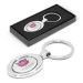Oval metal key ring with a plated shiny chrome finish which is nicely presented in a black gift box. It can be branded on the front with a resin coated finish or both the front and the back can be laser engraved to a natural etch.
