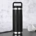 600ml stainless steel double walled Ozana Drink Bottle is made from 304 stainless steel in matt black. Vacuum insulated with a ring-style handle to help lift and unscrew the lid. This looped handle makes it easy to carry around on hikes and adventures. BPA free. Do not Microwave. Handwash only.
