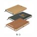 Unique medium-size (approximately A5) notebook with a hard cover which is manufactured from recycled leather, giving the notebook a textured finish and a natural look. The notebook is presented in an unbleached cardboard sleeve and has 80 pages (160 leaves) of 70gsm lined cream paper with a date grid printed on each page. Other features include a bookmark ribbon, an elastic band closure, a pen loop and a recycled leather icon on the back cover.