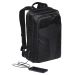 Jacquard polyester and water resistant 900D coated polyester|External USB charger port with integrated internal cable to charge your device|Four main zippered fully cell foam padded universal storage compartments with 15.6 laptop compartment|Zippered passport/security pocket on lumber back panel|Foam padded top grab handle|Mesh backed padded shoulder straps and contoured padded mesh back panels|Hands free mobile/media suction cup panel on shoulder strap|Back webbing panel can slip over wheeled bag handle|Capacity: 17.5 Litres