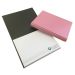 Un-printed bonded leather cover|100 leaf 100 x 75mm Stuk Note|CMYK only on pad|Pad Stock: 80gsm Sticky Note Offset Pages|Bonded Leather Colours Available:|Yellow (Approx. PMS 7405 C)|Orange (Approx. PMS 716 C)|Pink (Approx. PMS 701 C)