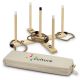 This classic game of Ring Toss is ideal for family gatherings, a day at the beach or as a great way to entertain guests at home. The game features six rope rings, five wooden pegs with screws and two base parts. The pegs and base are manufactured from Pine Wood and the rope rings are produced from Hemp. Wood is a natural material which produces unavoidable variances in the grain pattern, colour and branding. The game is beautifully presented in a natural drawstring bag with instructions included.
