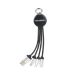 This round shaped light up charge cable comes with double sided light up branding will bring you a convenient way to charge your devices. It features a usb cable with micro USB, Type C, and lighting connectors, so you can power up multiple devices, even if they are different models. What makes this product unique is its anti-angle cable, contrasting connectors and keyring attachment. You can engraved the centre with your logo and light up in white colours on the both sides. This item would surely become the perfect giveaway to promote your hi-tech store.