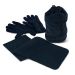 Delightful scarf, beanie and gloves set which is manufactured from warm, non-pilling polar fleece and is presented is a matching drawstring bag. The beanie has a roll up cuff and is available in one size which will fit most people. The gloves are available unbranded in one size and can be clipped together when not in use.