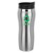 375ml 304 grade stainless steel mug BPA free double wall with a push-seal plastic lid keeps drinks hot for longer brush finishing engraves to a natural etch.