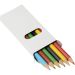 6 coloured pencils in a white paper box. Pencil colours include yellow, fuchsia, light blue, lime green, dark brown and black.