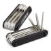 Smart seven-piece set of powder coated tools in a compact, pocket-size multi-tool. It has five different size Allen keys, a Phillips screwdriver and a conventional screwdriver.