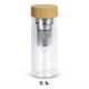 Elegant 350ml, double wall borosilicate glass bottle which maintains hot or cold drink temperatures for longer and remains comfortable to hold. It has a removable stainless steel infuser for tea or fruit and a secure screw on bamboo lid. The bottle is BPA-free and is manufactured from borosilicate glass which is incredibly light and very strong. Bamboo is a natural material which produces unavoidable variances in the grain pattern, colour, and branding. This product is not dishwasher safe, and handwashing is recommended.