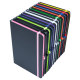 Art Paper with Black Film Hard Cover, Coloured Elastic Retaining Closure and Ribbon Page Marker, Pen Loop, 80 leaves of white lined paper.