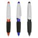 A special unique design plastic promotional pen with retractable action white short barrel and coloured top tip and neck black soft rubber grip with Parker-Type refill high quality German manufactured black ink refill and tungsten carbide ball which brings you the better writing quality 1200 meters writing distance.