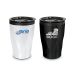 BPA-free 400ml double wall coffee cup which will keep drinks hot for longer. It features a radical twist patterned stainless steel outer wall and a polypropylene inner wall. Tornado has a secure plastic push on lid with a splashproof sliding closure and a soft non-marking base. The black and white cups laser engrave to a shiny steel finish and the silver cups engrave to a natural etch. This product is not dishwasher safe and handwashing is recommended.