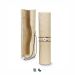 Unique wine presentation tube made from curved natural pine wood. The tube uses a button and tie elastic closure and will hold one standard wine bottle.