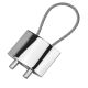 A square metal key ring with a cable clasp made of zinc alloy metal in shiny gloss chromed unscrew the nib to release the cable for putting keys in can be laser engraved and printed print may fade over time a great promotional product.