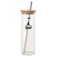 480ml Vanisa Glass Drink Bottle made of single-walled borosilicate glass which is suitable for both cold and hot. Transparent and pure with comfortable touch. Free of plumbum and BPA which is ecofriendly and a healthy drinking liquid style. Split proof tight sealed bamboo lid to ensure no spillage and a bamboo straw held tight by a transparent rubber eyelet on the lid.