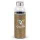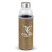 Deluxe 600ml borosilicate glass drink bottle which features an insulating soft poly jute sleeve that helps to keep drinks cool. The sleeve is fashion-inspired textured polyester outer. It has a secure screw-on stainless steel lid which can be laser engraved with a logo. Borosilicate is a lightweight glass that is exceptionally strong and shatter-resistant. Glass is a natural choice for a clean, pure taste and is a safe and reusable plastic alternative. This product is not intended to be used with carbonated or hot liquids. It is not dishwasher safe and handwashing is recommended.