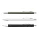 Retractable aluminium ballpoint pen with a debossed pattern on the grip, a matte lacquered barrel and shiny chrome accents. It has a blue large volume refill with 800 metres of writing ink and can be presented in an optional black pen sleeve.