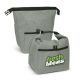 Large 9L lunch cooler bag with PE foam insulation encased in a water-resistant PEVA inner liner. The outer construction is premium heather style poly-canvas with a handy slip pocket on the front. It has a secure roll top and buckle closure which forms a carry handle when closed.