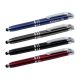 This innovative 3-way aluminium pen features a useful stylus and super-bright LED torch. The torch magically turns on as soon as the lid is attached to the back of the pen, making it the ideal pen for writing in the dark, as the torch lights up the writing area.